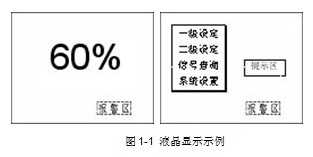 執(zhí)行機(jī)構(gòu)自身帶有液晶顯示。液晶顯示分為菜單、報(bào)警、提示與電池電量四個(gè)顯示區(qū)。菜單顯示用于顯示執(zhí)行機(jī)構(gòu)的設(shè)定、檢查和診斷菜單。閥位顯示區(qū)以數(shù)字和模擬圖兩種形式顯示執(zhí)行機(jī)構(gòu)的閥位開度,閥位開度顯示的分辯率為1%,液晶顯示器帶有背光,在供有主電源的情況下,背光會(huì)點(diǎn)亮。