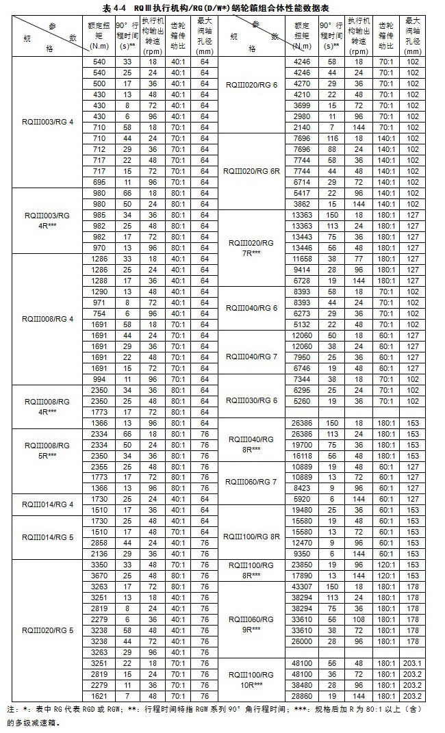 RQⅢ執(zhí)行機(jī)構(gòu)選型