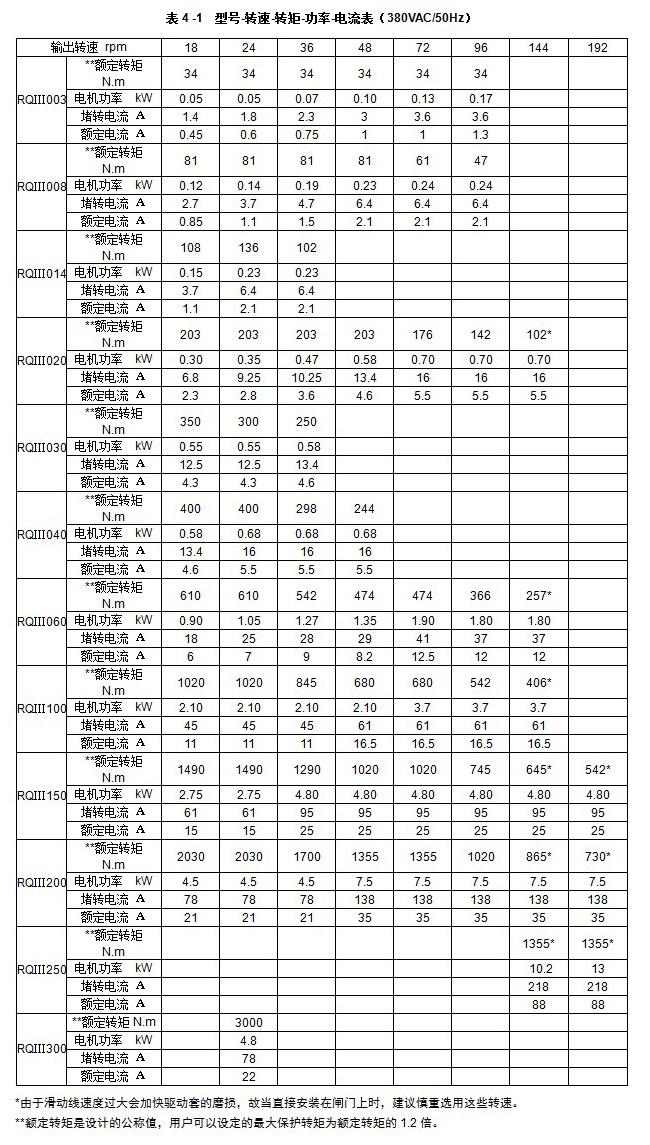 要根據(jù)如下參數(shù)對(duì)RQⅢ執(zhí)行機(jī)構(gòu)進(jìn)行選型: