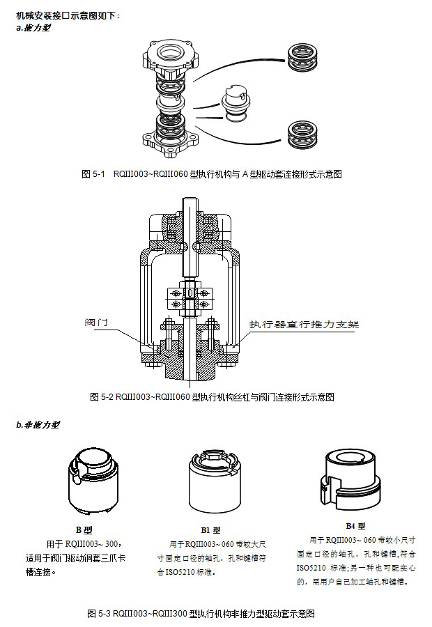 關(guān)于執(zhí)行機(jī)構(gòu)安裝與調(diào)試的具體方法和步驟,見《RQⅢ/RQMⅢ系列執(zhí)行機(jī)構(gòu)安裝使用說明書》。