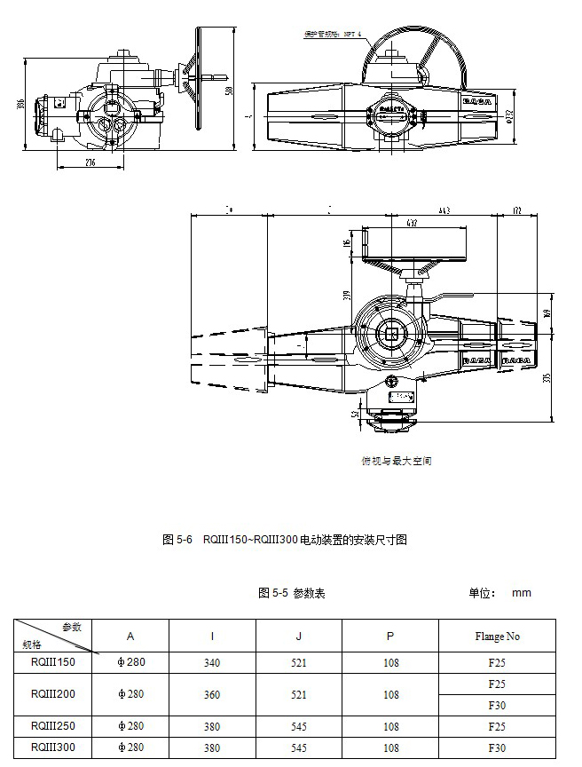 RQⅢ003~RQⅢ100的執(zhí)行機(jī)構(gòu)標(biāo)準(zhǔn)手輪為頂裝手輪。