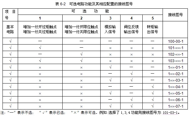 6.7 執(zhí)行機(jī)構(gòu)的可選功能(見表6-2)